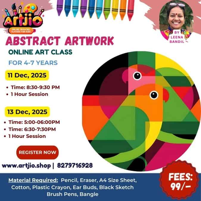 Let your little artist dive into the colourful world of abstract art with Leena Bandil Ma’am’s Abstract Artwork Online Art Workshop! 🌈✨