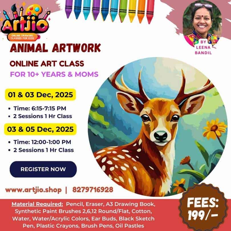Step into the world of nature and colours with Leena Bandil Ma’am’s “Animal Artwork” class — a beautiful creative experience designed for 10+ years & moms! 🌿✨