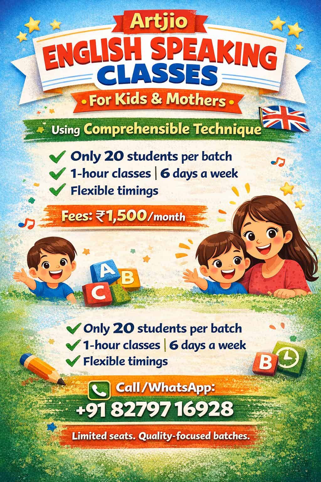 Artjio English Speaking Classes are specially designed for kids and mothers who want to speak English confidently, naturally, and without fear.