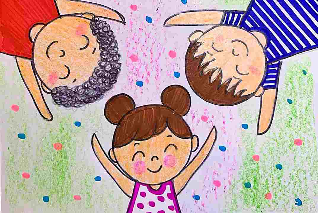 This adorable recorded session brings a burst of colour, joy, and creativity for young artists! Children learn how to draw three happy friends lying on the ground and celebrating together, using simple shapes, bright colours, and easy step-by-step instructions. The artwork helps kids improve hand–eye coordination, build confidence, and explore expressions through cute cartoon characters. With guided colouring and shading techniques, little learners enjoy making cheerful backgrounds and adding fun details like confetti and patterns. This session is perfect for boosting imagination, practising fine motor skills, and creating a lively, heart-warming picture that kids feel proud to show!