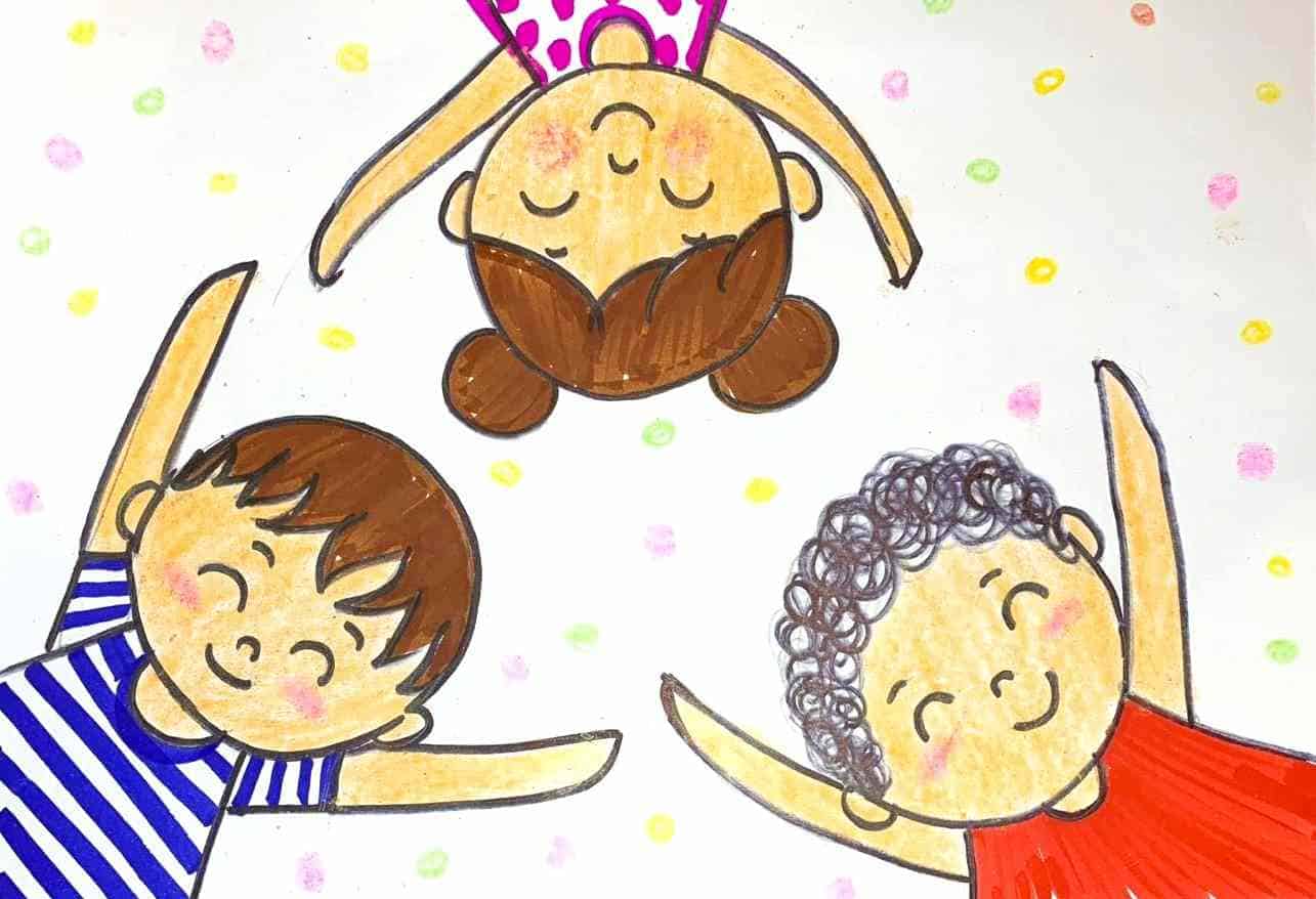 This adorable recorded session brings a burst of colour, joy, and creativity for young artists! Children learn how to draw three happy friends lying on the ground and celebrating together, using simple shapes, bright colours, and easy step-by-step instructions. The artwork helps kids improve hand–eye coordination, build confidence, and explore expressions through cute cartoon characters. With guided colouring and shading techniques, little learners enjoy making cheerful backgrounds and adding fun details like confetti and patterns. This session is perfect for boosting imagination, practising fine motor skills, and creating a lively, heart-warming picture that kids feel proud to show!