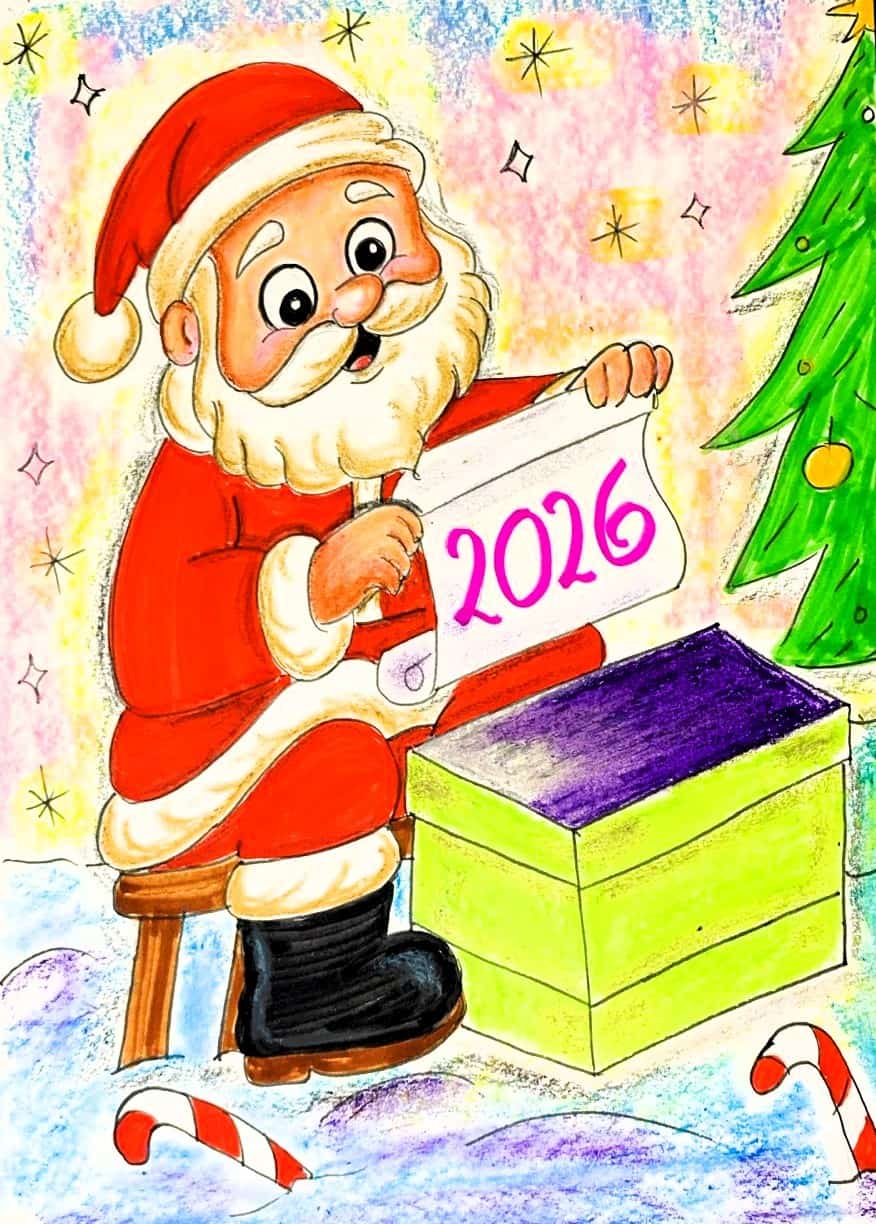 Celebrate the festive spirit of Christmas and the joy of welcoming the New Year with this delightful Santa artwork recorded session. In this class, participants will learn to draw and colour an expressive Santa holding a “2026” scroll, along with beautiful Christmas elements like a decorated tree, gift box, snow, and festive background. This session focuses on structured drawing, neat colouring, and smooth colour blending to create a lively and cheerful artwork. Guided step by step, learners will understand proportions, facial expressions, shading, and background detailing. Suitable for senior kids and moms, this recorded session allows learners to practice at their own pace and replay whenever needed. A perfect creative activity to relax, improve art skills, and create a festive masterpiece to celebrate Christmas and New Year together. 🎄