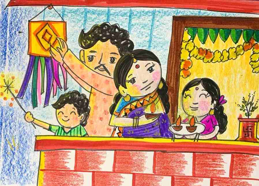 In this recorded session, children will learn to draw a joyful family celebrating Diwali together on their balcony — lighting diyas, hanging lanterns, and decorating with marigold garlands. 🌼🎆 With simple step-by-step guidance, they’ll explore family figures, festive details, and Diwali decorations while enhancing their creativity and confidence. Kids will also learn the use of warm color combinations, expressions, and background composition to bring the artwork alive with the true essence of Diwali. 💫 Perfect for ages 8–10, this session beautifully captures the spirit of togetherness, happiness, and light — making it a heartwarming festive art experience! 💖🪔
