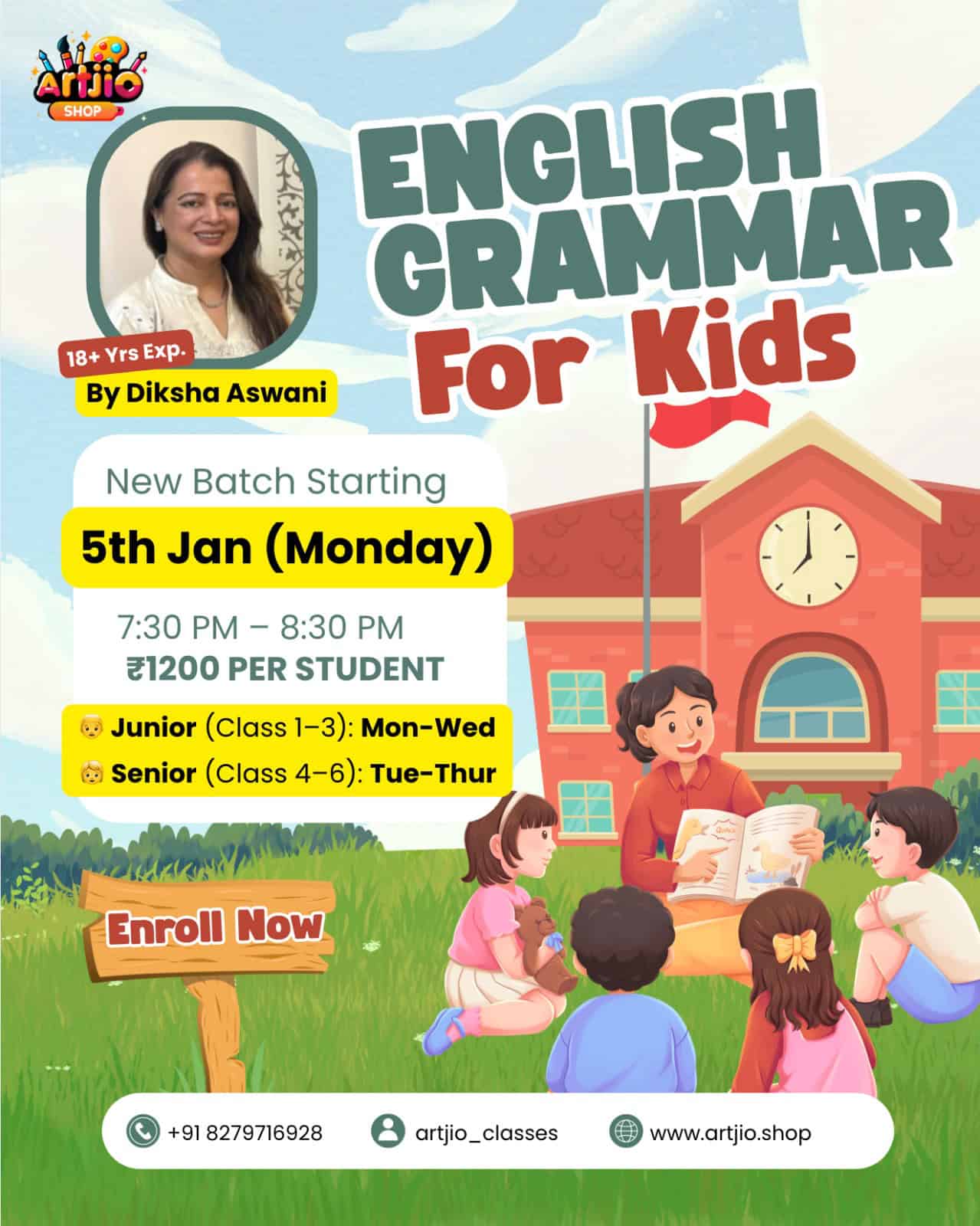 Give your child a strong foundation in English grammar with our structured and engaging Senior Grammar Batch, guided by Diksha Aswani Ma’am (18+ years of teaching experience).