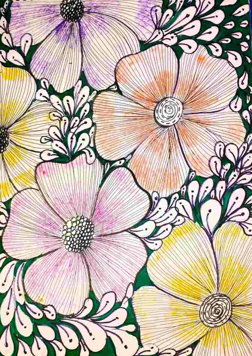 In this beautiful recorded session, participants will explore the art of line drawing to create elegant floral pen artwork. 🌼🖋️ Guided step-by-step, students will learn how to use fine lines, curves, and detailing techniques to bring delicate flowers to life. 🌿This class helps improve focus, patience, and precision, making it ideal for ages 10+ & moms who enjoy calm, mindful art sessions. 💫 The use of ink pens with soft color blending adds sophistication and beauty to the composition.