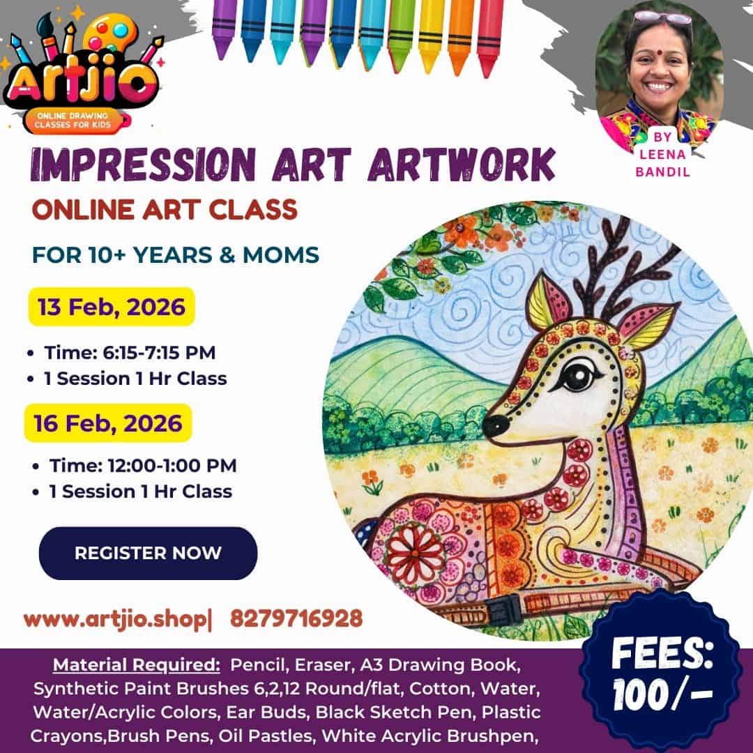Celebrate creativity, calmness, and artistic expression with our Impression Art Artwork online art class, specially designed for 10+ years students and moms. In this soothing and expressive session, participants will learn to create a beautiful impression-style artwork using textures, patterns, and vibrant yet balanced colours.