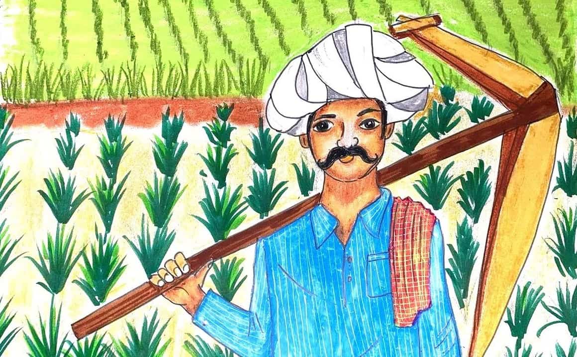 This beautiful artwork pays tribute to the hardworking farmers of India on the occasion of Kisan Diwas. The illustration showcases a proud farmer standing in his lush green fields, holding a plow on his shoulder, symbolizing his dedication to agriculture. Dressed in traditional attire with a turban and a vibrant blue kurta, he represents the backbone of our nation’s economy. Farmers toil tirelessly to provide food for the country, nurturing the land with their sweat and perseverance. On this special day, let’s honor and appreciate their invaluable contribution, ensuring they receive the respect, support, and resources they truly deserve.