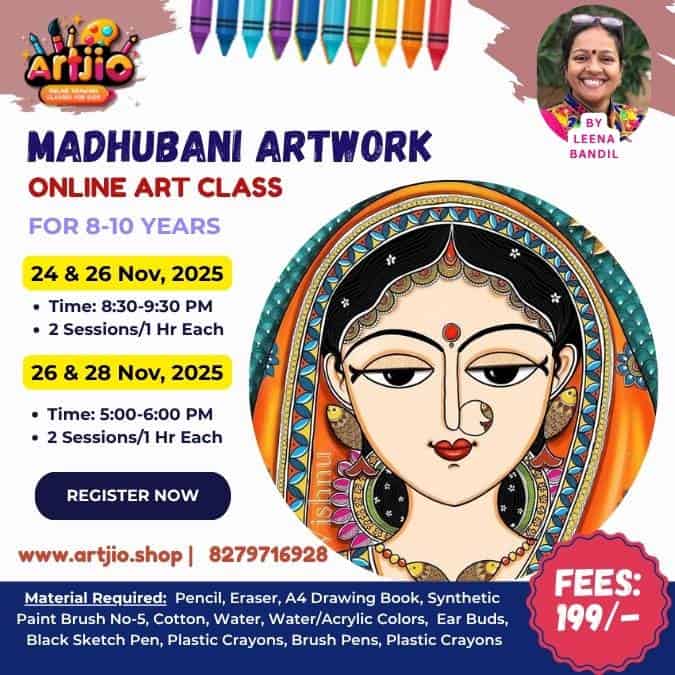 Madhubani Artwork Live Workshop For 8-10 Years | 2 Day Session | 24 & 26 Nov | 26 & 28 Nov