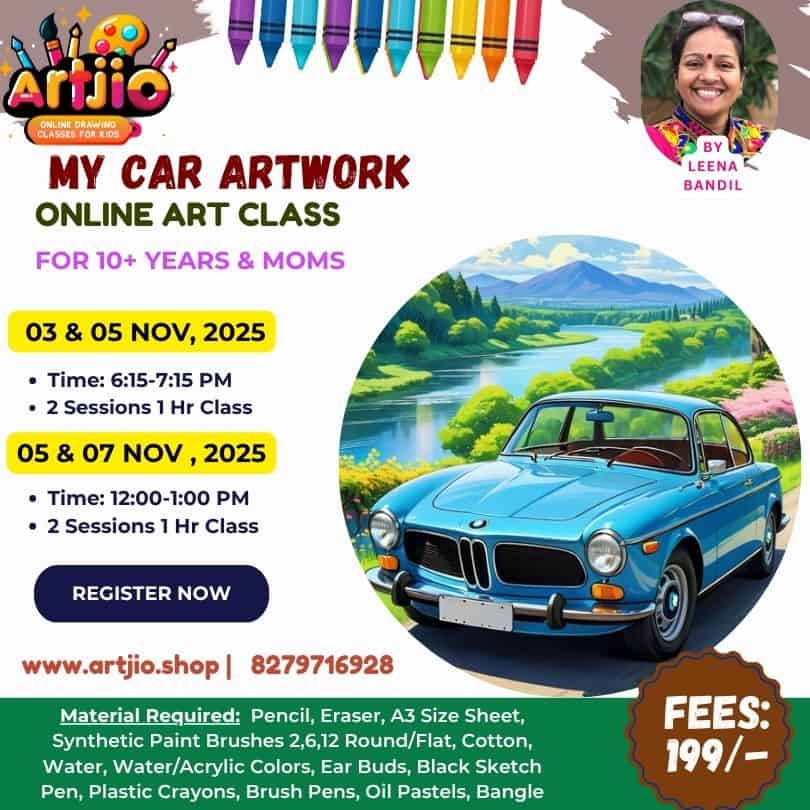 Get ready to zoom into creativity with our “My Car Artwork” online class, guided by Leena Bandil Ma’am! ✨
