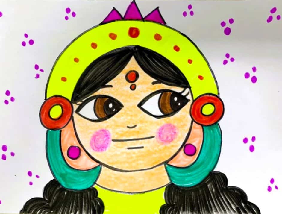 In this recorded art session, children will learn to draw and color a beautiful Goddess face with simple step-by-step guidance. Using basic shapes, bold outlines, and bright colors, kids create a graceful traditional look with a crown, earrings, bindi, and expressive eyes. 🪔💖This activity helps young learners improve line control, coloring skills, and creativity, while also connecting them with cultural and festive themes. The easy techniques make it enjoyable for beginners, while the detailing enhances confidence in drawing faces. Perfect for ages 4–7, this session blends art with tradition, making learning both fun and meaningful. 🌼🎨