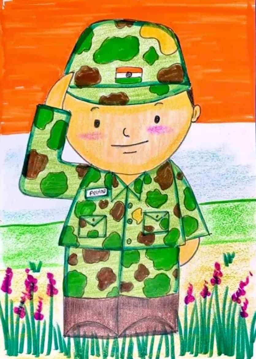 Celebrate the spirit of patriotism with this pre-recorded Republic Day special drawing session! Learn how to create an adorable cartoon-style Indian soldier in a camouflage uniform, proudly saluting the nation with a bright tricolor flag in the background. This easy and fun tutorial is perfect for kids and beginners, helping them understand coloring techniques, shading, and fine detailing using crayons or color pencils. With step-by-step guidance, students will develop artistic confidence while honoring our brave soldiers. Join this creative journey to express gratitude towards our Indian Armed Forces through a heartfelt and colorful tribute this Republic Day!