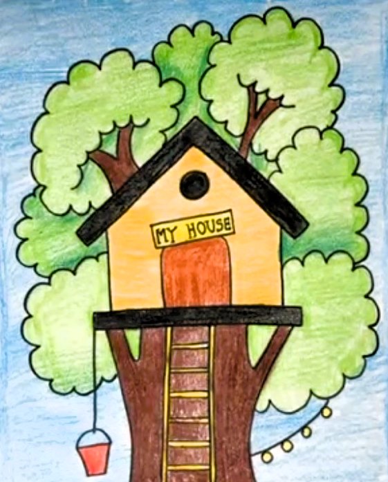 In this imaginative pre-recorded drawing session, kids will learn how to create a cozy and colorful treehouse nestled among lush green trees. With easy-to-follow steps, they’ll draw a tall tree with a ladder leading up to a charming little house labeled “MY HOUSE,” complete with a slanted roof, wooden door, and hanging bucket. The artwork is filled with playful details like fairy lights and bushy leaves, encouraging storytelling and creativity. Young artists will explore shapes, layering techniques, and coloring skills, while enjoying a whimsical world they build with their own hands. A perfect session to boost creativity and fine motor development! 🌳🏠✨